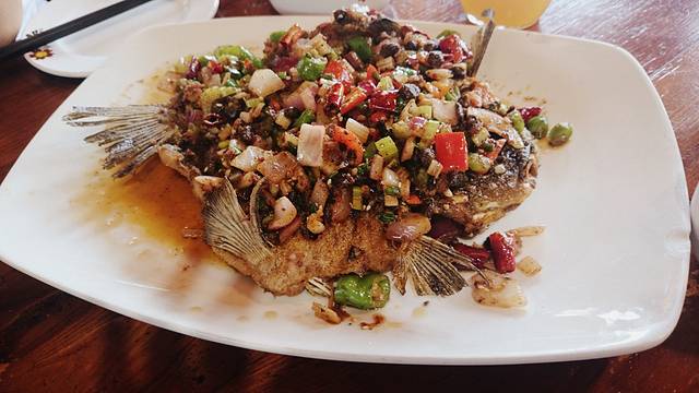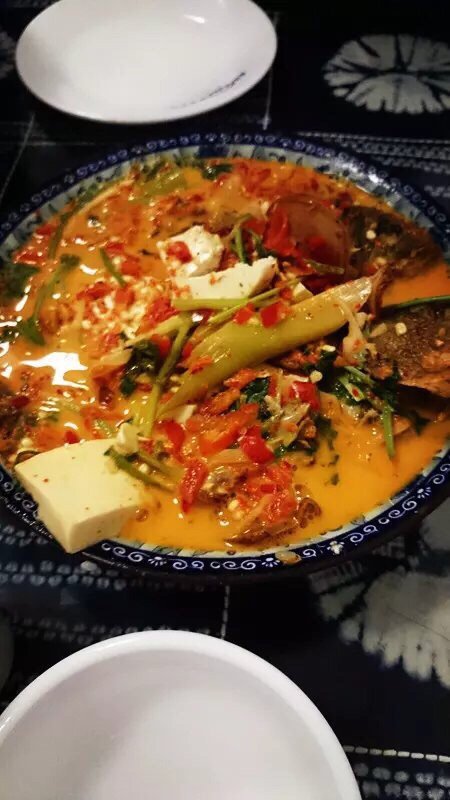 客栈附近的一家饭店,我也怀疑是我忘记招牌还是根本没有招牌了.但是墙上有很多演员在他家海边取景的照片.店面不大,十分干净.住在大理的几天,基本都是在他家吃的,因为真的美味,就不想换地方去尝试.酸辣鱼好吃到什么程度,我哥他吃了四碗米饭……