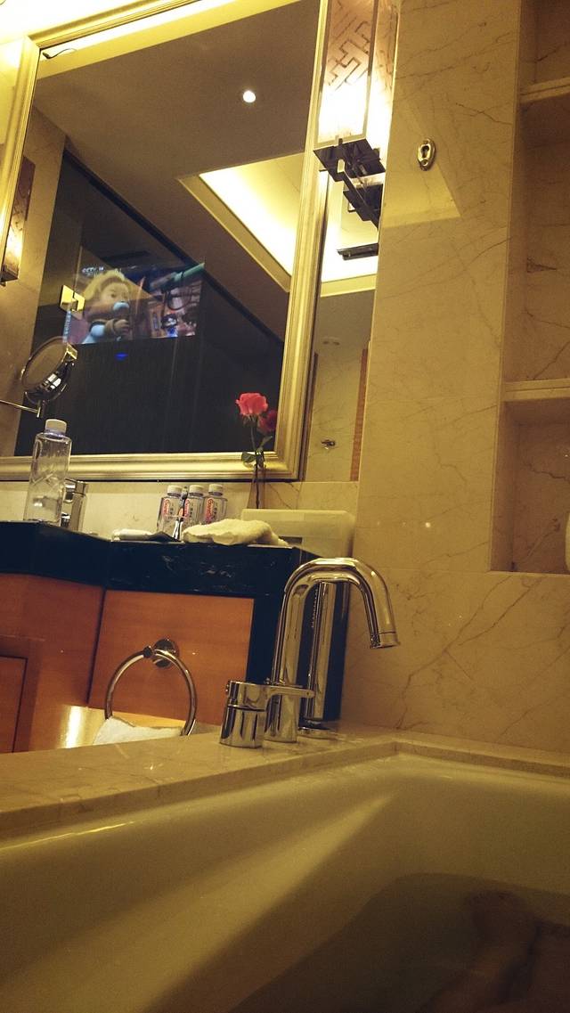 这面嵌进镜子里的电视机实在特别 ,于是在云南的第一晚 ,躺在浴缸里看着动画片 ,舒舒服服泡了个澡.睡了一个安稳觉.