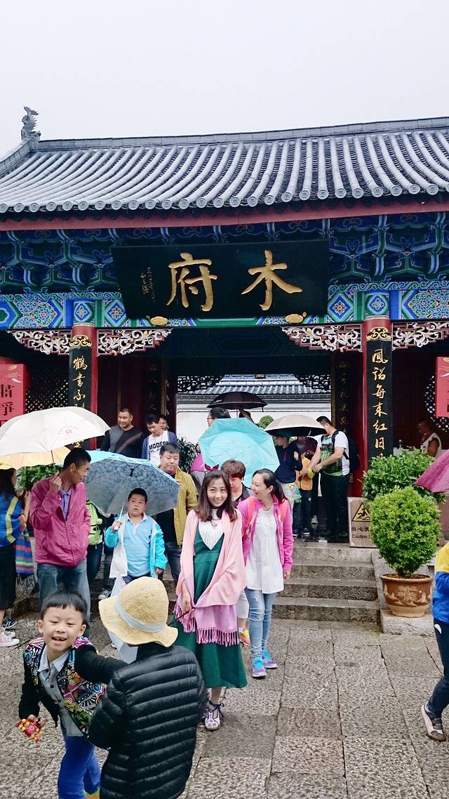 木府游客是成批进入的,每一批配有一个讲解员,方便于了解纳西族东巴文化.