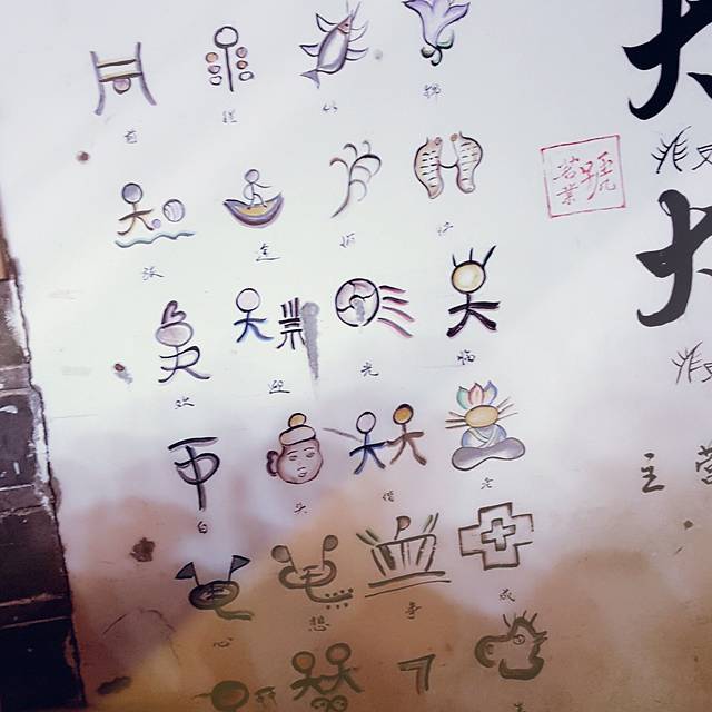 这些应该是纳西族的文字,看起来很可爱.一面墙就这样承载起了纳西族文化.