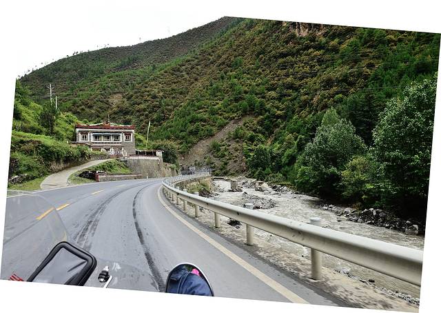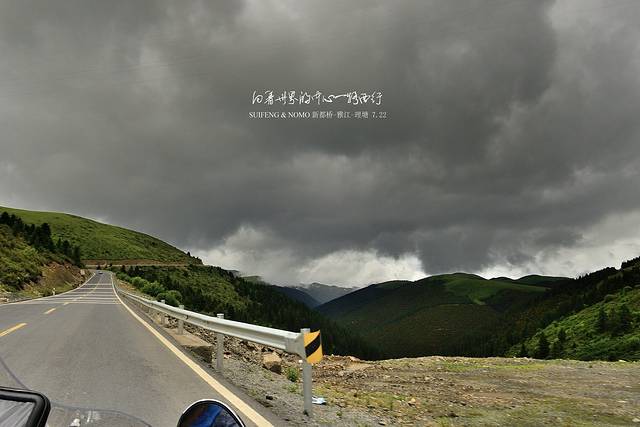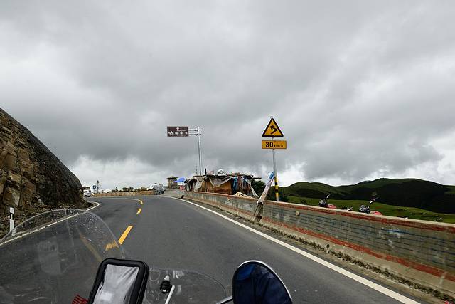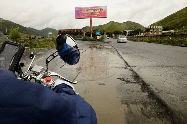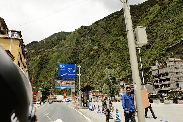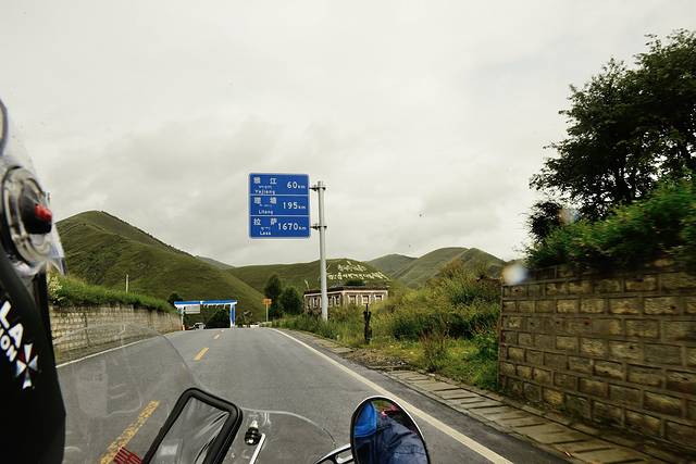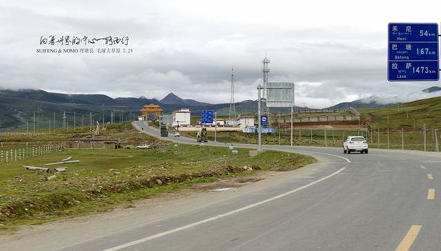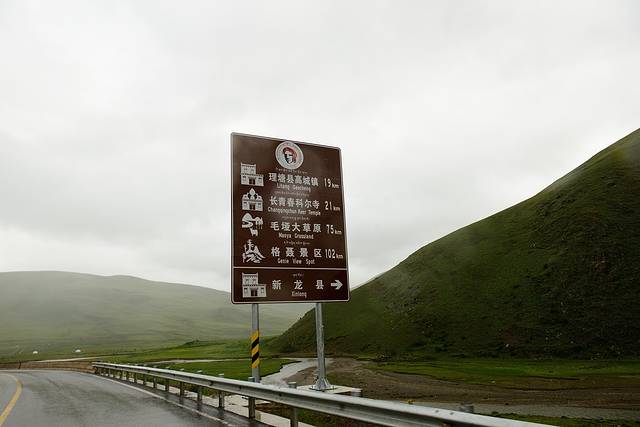 出理塘,但是天公并不做美,阴沉沉,似乎要下雨的样子。还没有出县城的西城门,路牌就显示到禾尼乡只有54公里了。