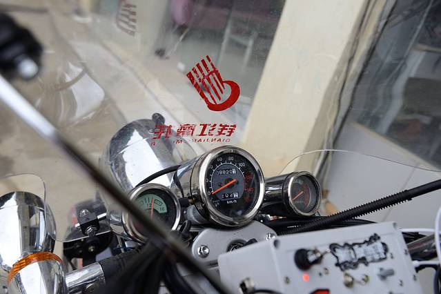 2)摩托车加强货架、加装防雾灯、安装自制的前后座通讯设备,进行全面的检查,增加齿轮减速比,更换润滑油,调紧链条,轮胎注入自补胎液,检查刹车、离合……
