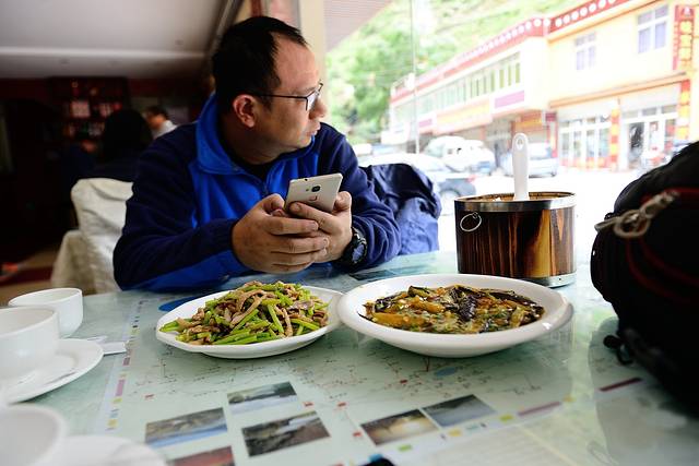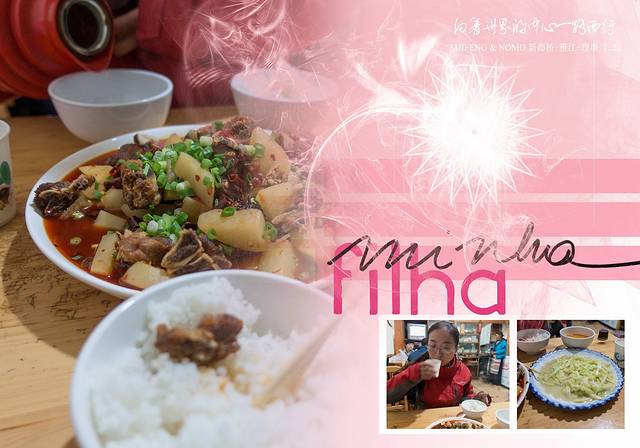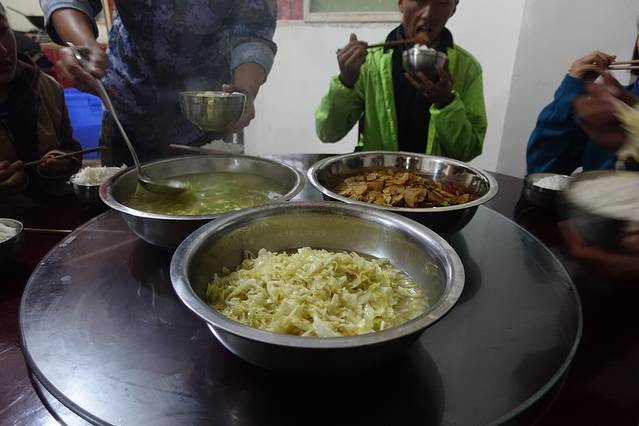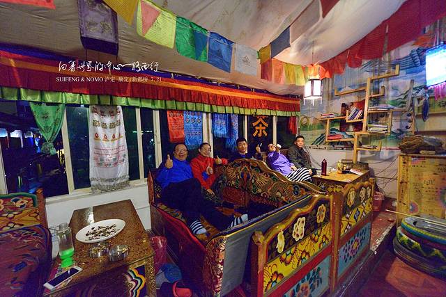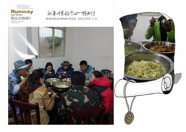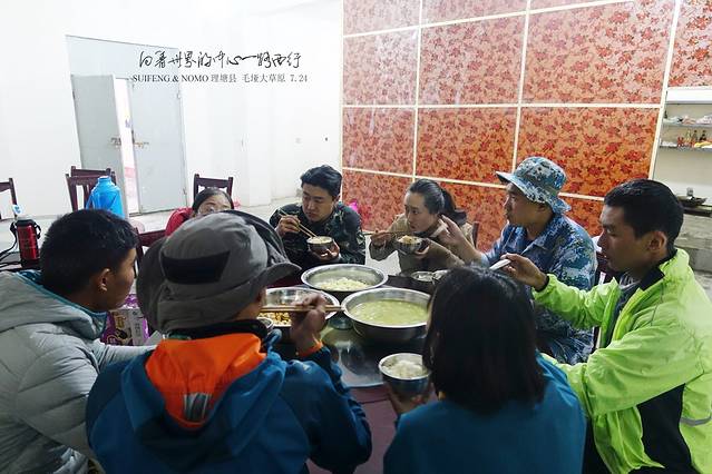 今晚住在这里的驴友刚好一桌。有四位自行车骑行的,有三位纯徒步的,我们最轻松,骑摩托车。