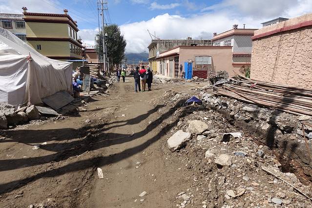 再右转,进入格聂路,由于修葺中,道路显得很泥泞