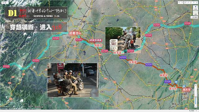 按计划,今日是从重庆出发,先上国道G319,经重庆市璧山区、铜梁区,进入四川省安岳县,在乐至县正式进入国道G318,然后在简阳市上成简快速,过龙泉山进入成都市区。