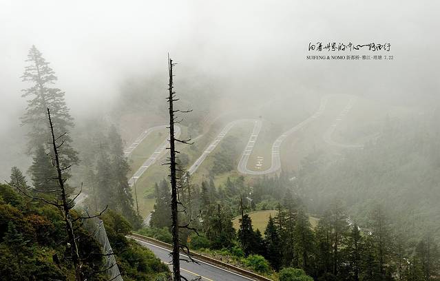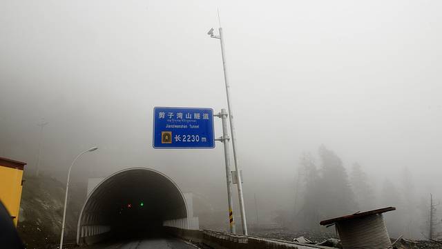 出剪子弯山隧道,与高尔寺山不同,并不是迅速下降,而是相对平缓地在山上行驶,风景大好,虽然没有蓝天白云,但显着云雾蒸腾。