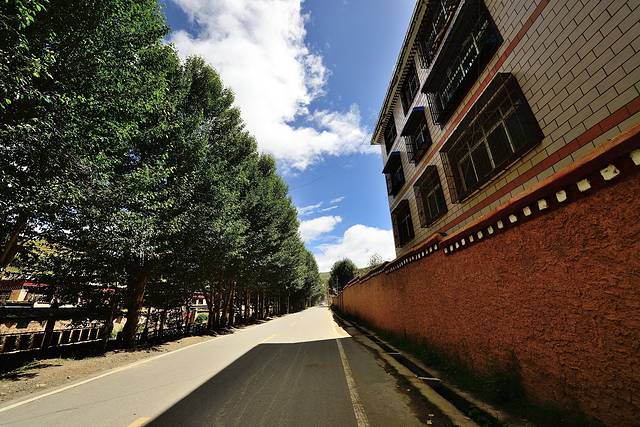 沿着这条笔直的路向北,大致1公里左右,长青春科尔寺就坐落在道路尽头的小山上 。