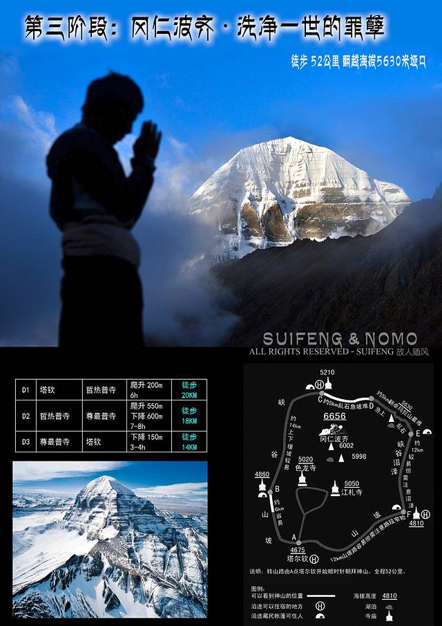 我们将前往冈仁波齐分为——“穿越横断”,“进入神域”和“漫漫朝圣路”三个阶段。由于存在太多的不确定性,对于返回只能到时候再具体考虑了。