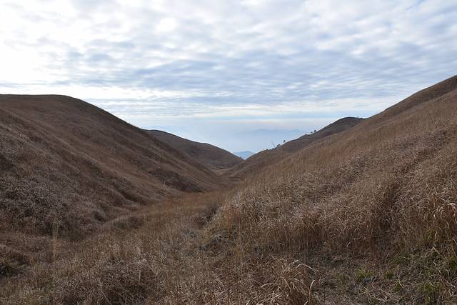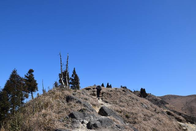由于我们的粮食和水吃喝了不少,今天的行李减轻了超多,顿时感觉轻松了许多,今天的穿越就不像昨天的登高了,昨天主要是爬升,从低海拔上升到高海拔,而今天主要是从这座山峰穿越至下一座山峰,下降与爬升并存。折腾与快乐并存