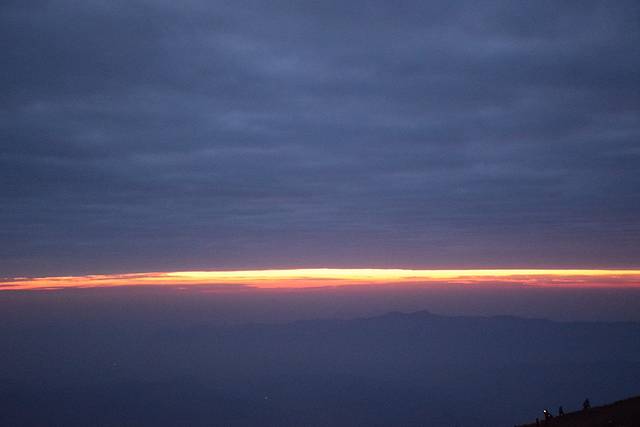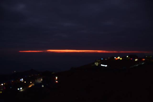 冷风一直吹,叫最早起来的我叫醒了其他伙伴,6:30带了贵重物品,帐篷未收直接奔去栈道的东向,那时候天还是黑黑的,可是去到东向才发现,那里已是人群一片,所幸地找到一个合适的位置,此时东向的天空已出现一天裂缝,像将天空撕开一般,周围都在拍拍拍,好热闹。