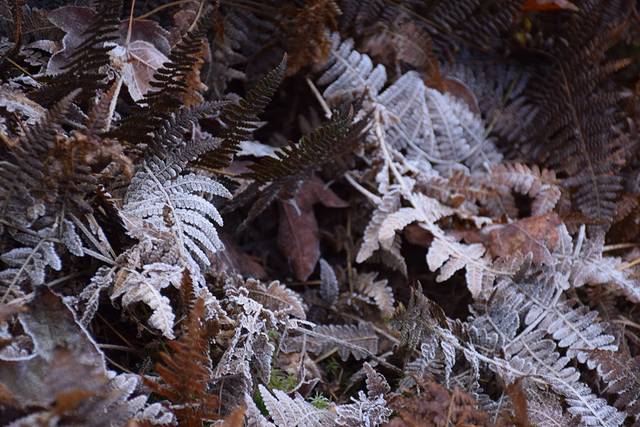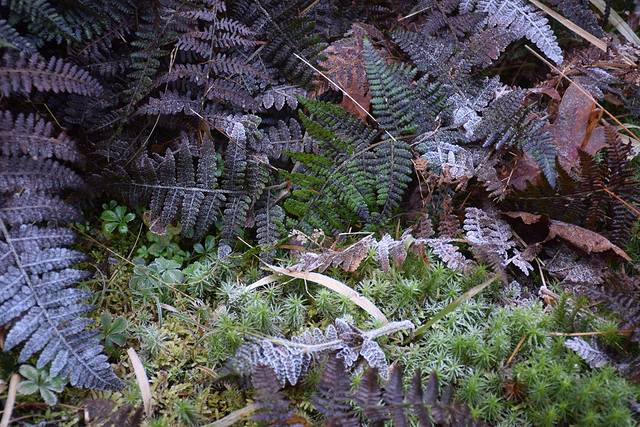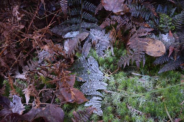 从登山不久就遇到路边的植物洒满了白白的霜,看见此状,大伙们“哇哇哇”直叫,咔、咔、咔拍照留念。想想早上这里的温度必然超低,于是和大伙们玩起了“呼气吐烟”的小玩意