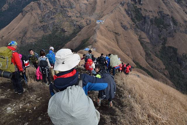【装备】冬天的武功虽说没到下雪的时候,但温度还是挺低的,尤其在晚上更是突破零下,所以建议准备一件羽绒、一件冲锋衣,爬山的时候可以穿冲锋衣,登顶后可以更换为羽绒也可以携带一些辅助御寒的暖宝宝贴;登高当然少不了登山杖啦,根据自己需要提前准备1~2支登山杖,也可以到登山口的驿站购买当地自制的竹子,2RMB/根,挺结实也实用;武功山处于海拔1000以上,最高1918.3,所以怕晒黑的朋友准备一支防晒用品为佳,也可用围巾裹成木乃伊防晒;选择露营则需准备帐篷、防潮垫、睡袋、帐篷灯等;如果想爬山没那么乏味的话还可以带上一个蓝牙音箱,听着自己喜欢的音乐爬山也是不错的体验;最后就是能装所有用品的大背包(登山包)。