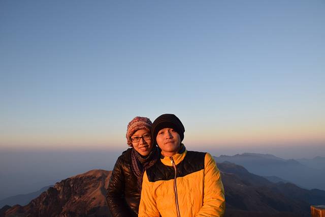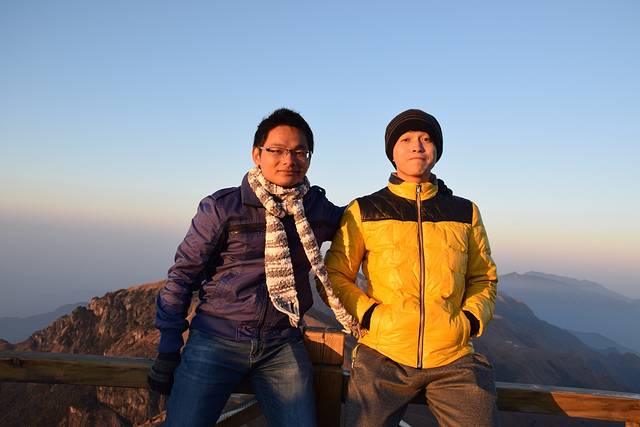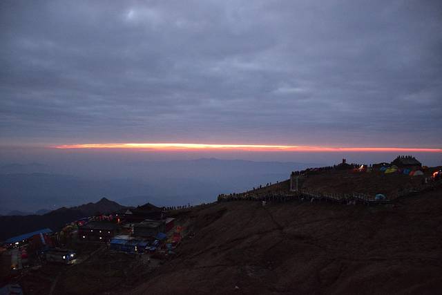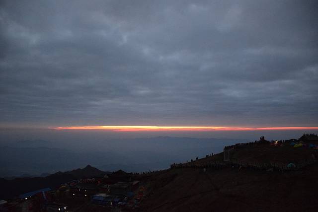 营地我们选择在金顶旁的云海栈道,木板底,平坦,是个不错的选择,方便看日出日落,当然建议不要选东向,因为早上醒来会有一堆的人看日出,这是个前车之鉴喔。我们的帐篷在日落的照射下还蛮好看的