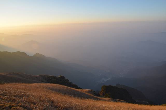 余晖照射下的武功山