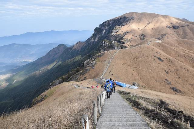 【户外路线】驴友或户外入门者(推荐)可选择武功山户外穿越线路:正穿路线:沈子村登山,途经九龙山(可选不经九龙山直接上铁蹄峰)、铁蹄峰(江西第二高峰)、金顶(江西最高峰)、绝望坡、最后在发云界下山到龙山村。反穿路线:龙山村登山、途经发云界、绝望坡、金顶(到这里可选景区路下山)、铁蹄峰或九龙山下山到沈子村。这两条线路为武功山最为火热的户外线路,汇集了武功山的精华所在。