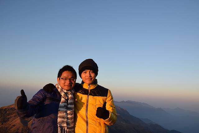 当时的温度大概是几摄氏度,刚开始登山都是羽绒围巾手套,天气寒冷不知为什么会感觉莫名的兴奋,可能是长期待在夏天的广州的后果?