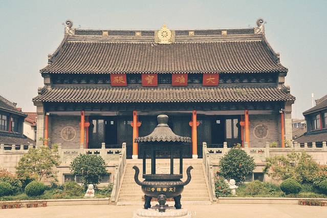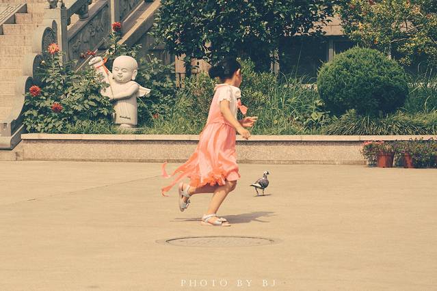 寺内的白鸽并不惧匆匆行人,就如同不惧时光一样,匆匆时光并未打破寺内悠远的木鱼声,僧侣们依旧守候在运河旁边,白鸽也依旧的聆听着叮咚铃声,不知疲倦。