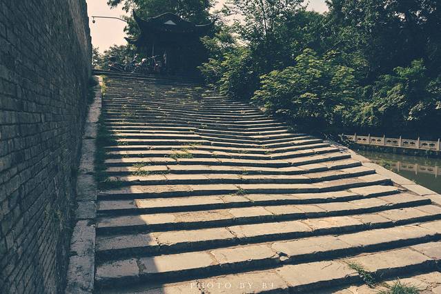 抬眼望去,是西方的大明寺栖灵塔和观音山寺,我相信当崔致远登上扬州城墙时,看到的也是同样的观音山和栖灵塔,只不过那时的他可能更在意的是远处的东方,一个他要大展宏图的远方。“秋风惟苦吟,世路少知音。窗外三更雨,灯前万里心”。