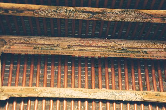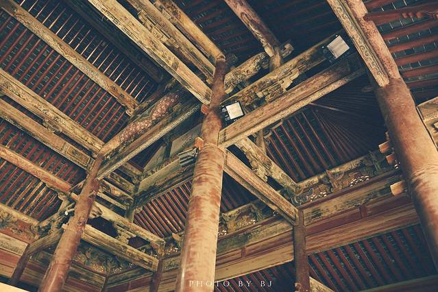 大殿内的枋梁依旧古朴,脱色的红漆并未掩盖它曾经的光彩,反而更加动人。