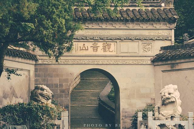过了桥之后就是观音山了,观音山并不是我此行的目的地,担心延误时间,故并未进入参观。史料记载,隋炀帝曾建行宫“迷楼”于此。观音山是山寺的代表,它处蜀岗东峰,因其地势在扬州最高,所以构寺大胆使用山寺的构造方式:不强调对称,而是在山体顶峰,随山势筑殿。