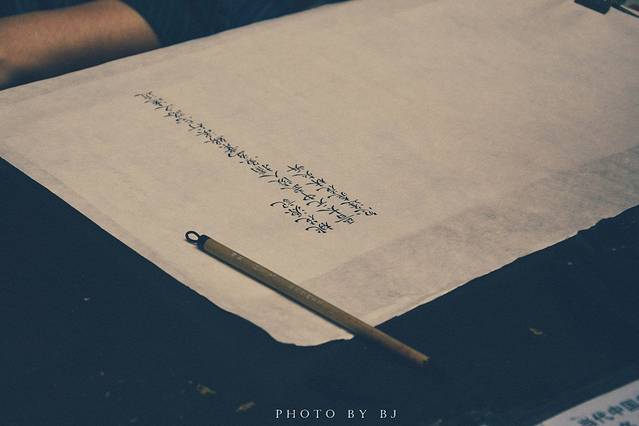 双博馆里的另一处---中国雕版印刷博物馆,也是非常有特色的,尤其它的现场展示操作区,这里展示的是雕版印刷的第一步,即书写;
