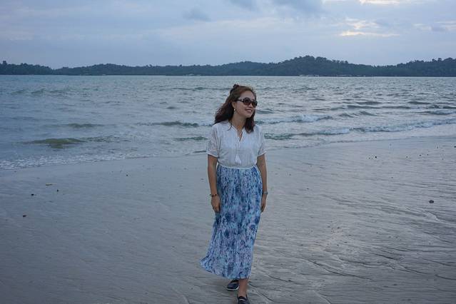 我还是来露哈面嘛~这次,因为眼睛问题,不是墨镜,就是斜视。我晚上走路上,都是带着墨镜的。所以,照片主要是墨镜。这是乌敏岛的海滩,我们快天黑的时候拍的。