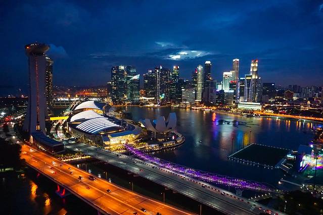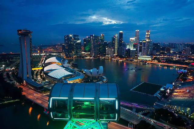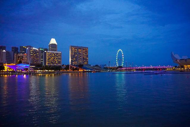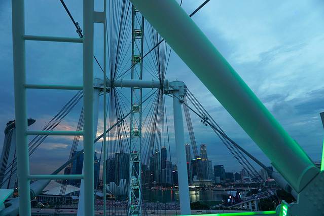 跨年夜,我们在新加坡摩天轮看夜景。运气很好,我们看到了晚霞,拍到了夜幕降临。