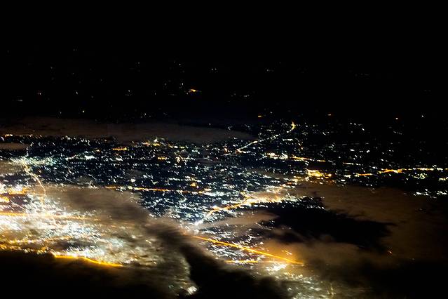 凌晨起飞。我坐的杯具的靠窗的位置,飞了很久,看到灯火辉煌,拍下了模糊的一张。我继续模模糊糊滴,坐了一个晚上。彻夜未眠。因为,我一直想去WC,但是,旁边的小伙伴们一直在睡觉,我不好意思把他们喊醒。所以,我开篇提到,飞一个晚上,简直爽爆了。