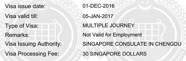 另外,新加坡签证不要提前太早办,因为有效期很短(如图所示)。我虽然双11就拍了,也很快递交了资料,但是,还是12月初才开始办,12月10日前后签证出来。签证就是给我的邮箱发一份pdf文件,自己黑白打印出来,出行的时候带上就是。