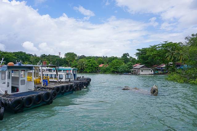 坐绿线到丹那美拉(Tanah Merah,EW4),出地铁站换乘(要问问路,不要走反了)2路公交车到樟宜渡轮码头,坐船乌敏岛Pulan Ubin,3新币。书上也的2.5新币,需要更新一下。图片是樟宜码头。换镜头真的是累,不换拍出来真的是很难看。