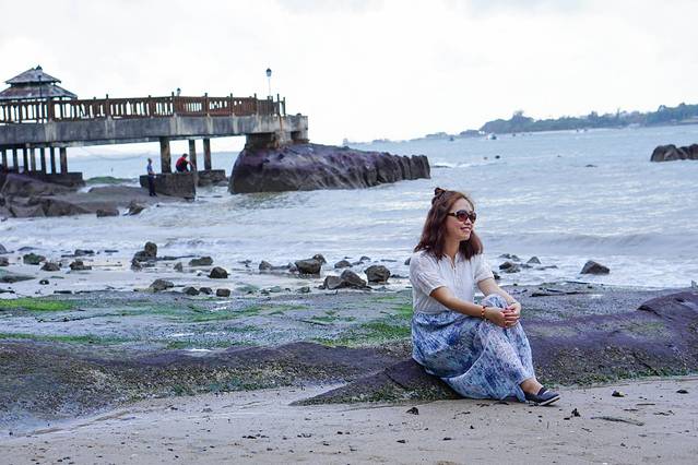 来到海滩,开始摆拍,就只有这两张是没有穿鞋的。带了两双新鞋子出来耍,代价也是相当大的,痛死我了。