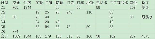 这次总体消费4300多元,包括机票、酒店、签证、电话卡、吃和行等,总之,全含。明细如下: