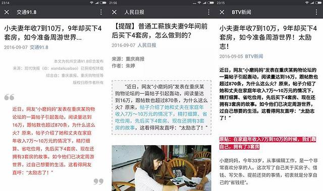 现在的我,已决定周游世界,过自己想要的生活。就在家庭年收入7万到10万的时候,我们靠自己,买了3套房子。是的,小磨妈妈曾经写过的文章《在家庭年收入7万到10万的时候,我们靠自己,买了3套房子,现准备周游世界》曾引起轰动,小磨妈妈的买房故事(主要讲的曾经为了买房辛苦的生活,以及买房之后准备周游世界,过自己想要的生活得故事)也因此登上国内几大主流媒体,并2次登上重庆电视台新闻频道的节目。如果大家想知道细节,问问Baidu就好啦,嘿嘿!