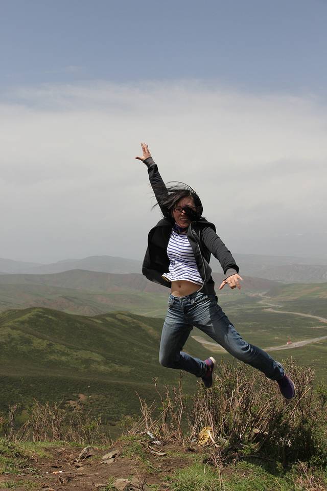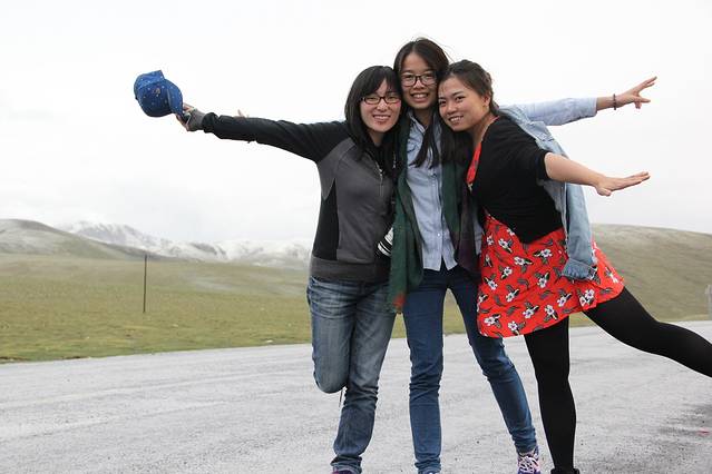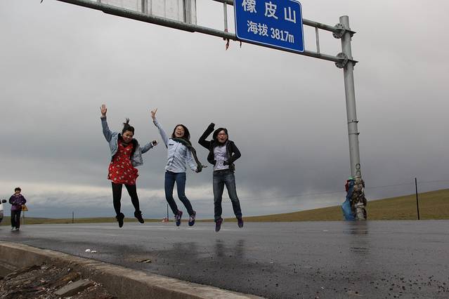 到达橡皮山,海拔3817m,雪停了,要跳吗,加上很冷,加上海拔,三个女汉子怎么跳就是跳不起来......