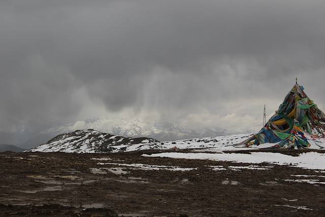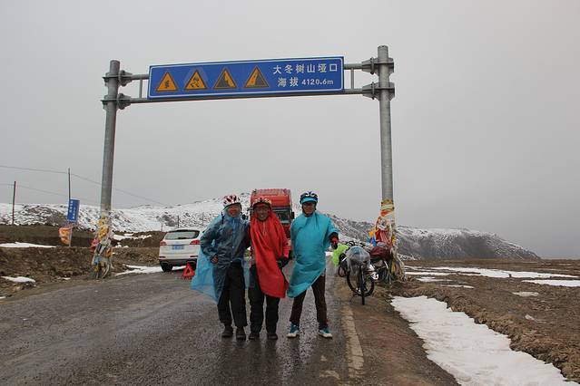 大冬树垭口,海拔4120.6m,遇到三个骑行勇士,他们是环湖骑上来的,冒着大雪,从海拔2000多骑到海拔4000多,一路的盘山公路,我帮他们留个影,中间的大叔近60岁了,能看到斑斑白发,向他们致敬,三个女汉子刚下车,就会了,实在太冷了,待了10几分钟,我也受不了,赶快上车。。。。