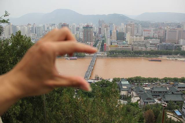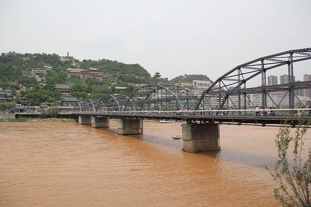 在白塔山公园,看黄河第一桥——兰州大桥,太黄了,真是跳进去也洗不清