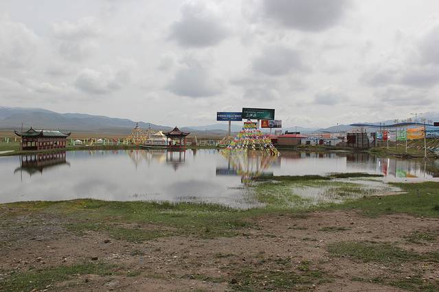 7点左右到达黑马河镇,天气突然转晴,隐约能看到蓝天白云,吃过饭后,决定去卓玛家的湖边看日落