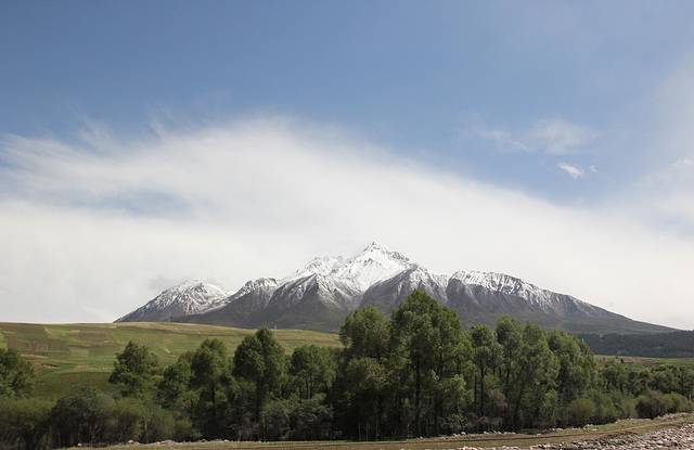 将要抵达祁连县时,雨、雪停了,天空放晴了,好清新的空气呀