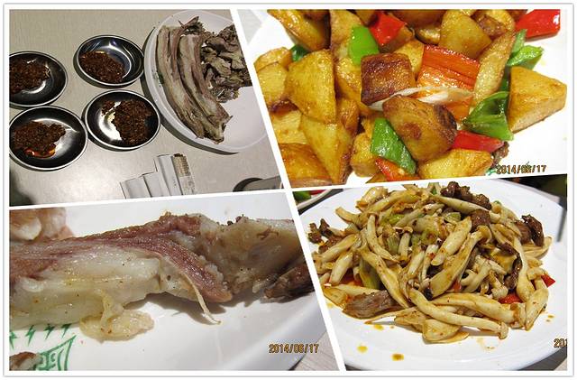 大概3点多,到达黑马河站,在镇上吃午餐,赵姐简绍了一家餐馆就在那里吃了,吃的菜,米饭,还行吧,说实话,他家的牦牛贵,还真心的不好吃。吃完饭稍作休整,去我们最向往的维多利亚天空之境的茶卡盐湖,吃饭的时候还下着小雨,赵姐说青海的天气变化很快,说不定到盐湖天气就晴了,走的时候终于不下了