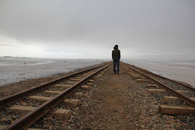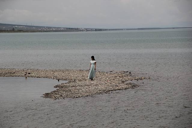 狂风更加肆虐,很冷,人们纷纷往回走,前面的妹子穿着裙子,一定是想拍自己倒影的.......