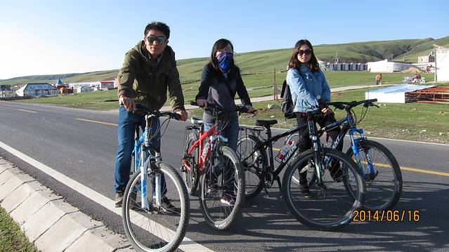 他家的高档住宅,标间,朝向湖面的湖景房,2楼三楼300多,是淡季哦,被想湖边的便一点,卓玛家有供游客骑行的自行车,20元每天2个小时,我们租了4辆,做会伪骑行者,主要是想感受一下沿湖骑行,