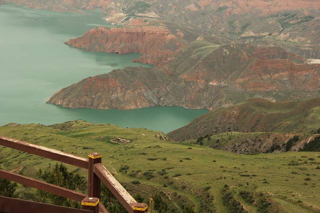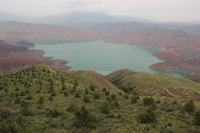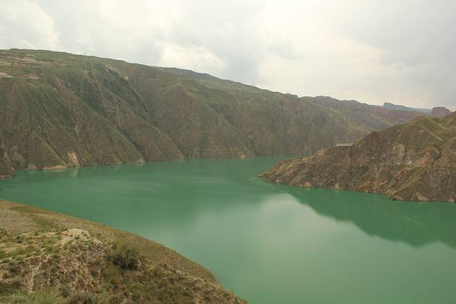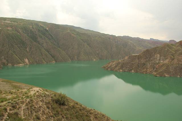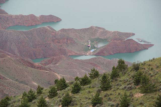 在高点的观景台,可以看到李家峡水库,碧绿的水,可惜灰蒙蒙的天气,远处就看不清了,不过很喜欢