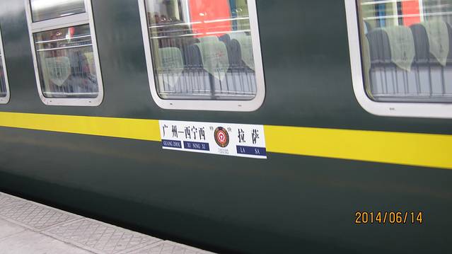 我坐是广州-拉萨的火车,才知道去拉萨的到西宁,就要换火车了,换上带氧气的绿火车,当时真想混上去.......