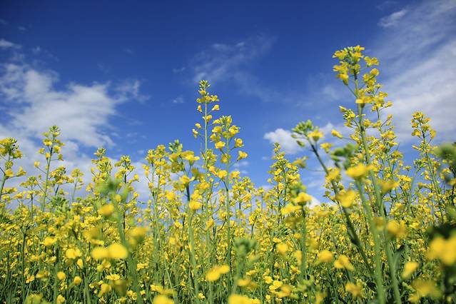 门源的油菜花,此时还都苗苗,只有麦田里开了一部分,