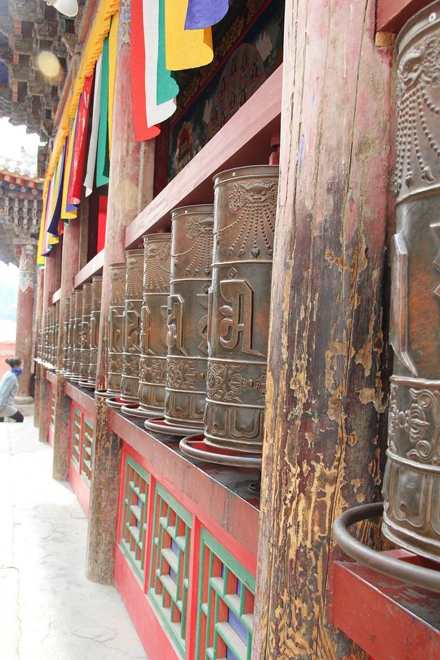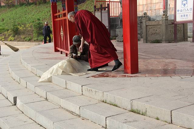 在塔尔寺到处可以看到虔诚的信徒五体投地朝拜