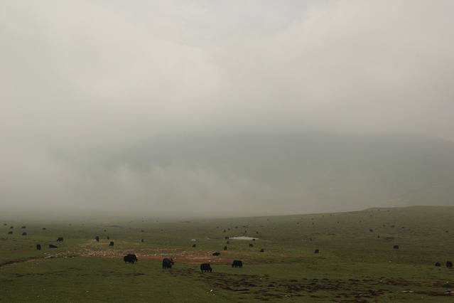 下了垃圾山,云雾渐渐减少,有很多牦牛
