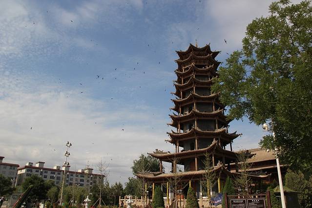 张掖-哈密 下午的火车,早上就去看了张掖木塔,木塔离鼓楼步行大约10分钟就到了,木塔上群燕环绕