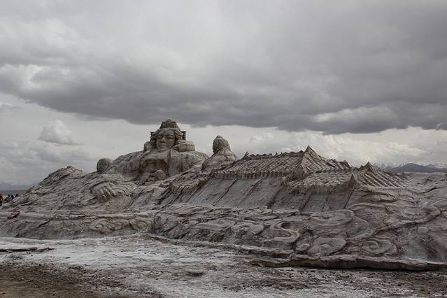 跨过橡皮山,到达茶卡盐湖,门票50元, 盐雕,有点黑黑的 注定我们会看到不一样的天空,会有倒影吗