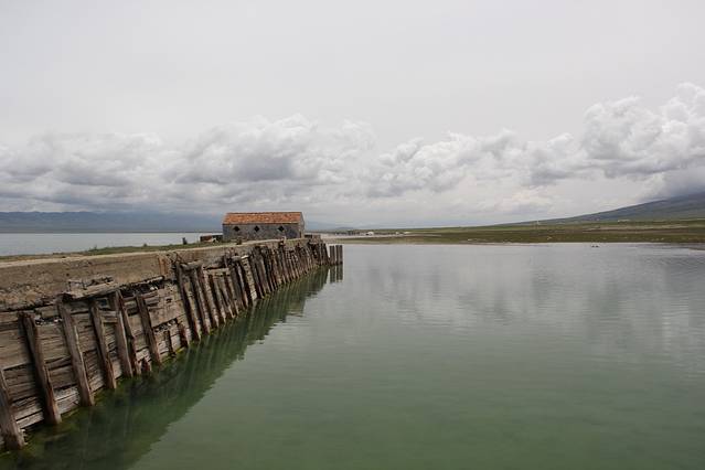 由于天气不是很好,这是在湖边唯一满意的照片,想不到吧前方的屋子,就是水厕....