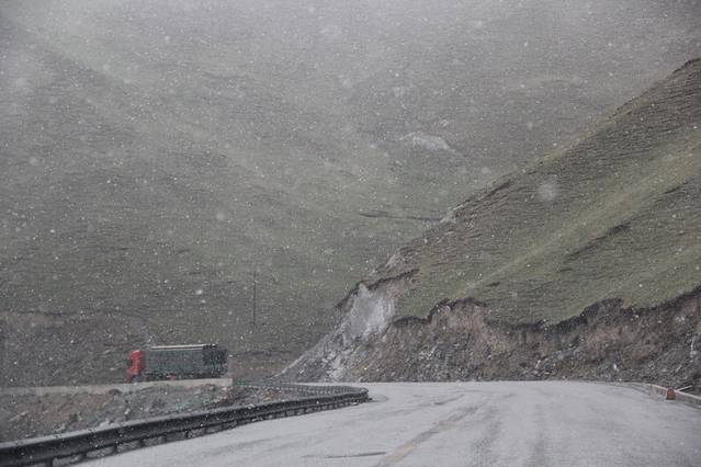 神马情况,快到橡皮山时下起了雪,这是6月15号呀,我没有看错,打开车窗,发现是真的